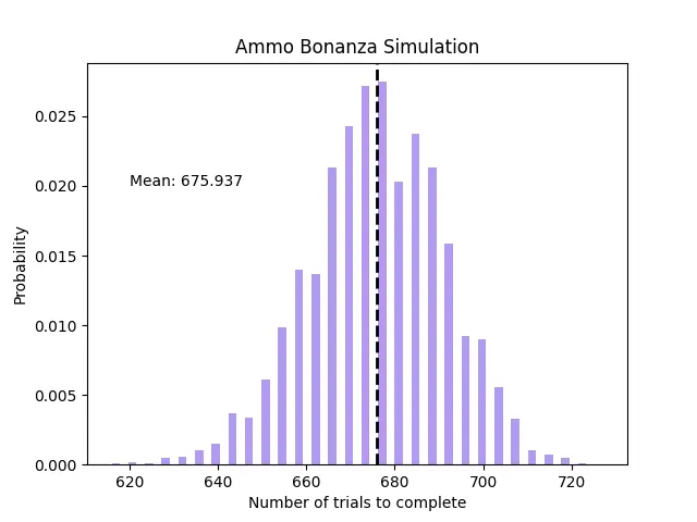 Here is a chart by swrlly that displays the results of 10,000 simulations of the event, determining the amount of Ammo required to complete it.