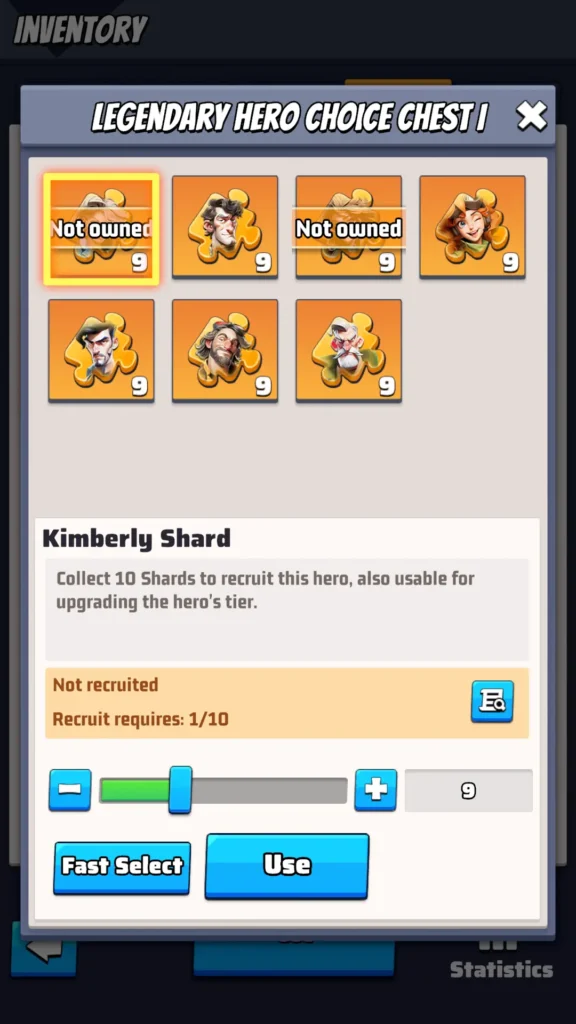 “Use it to choose a Hero Shard from: [recruitable Legendary Heroes].”
